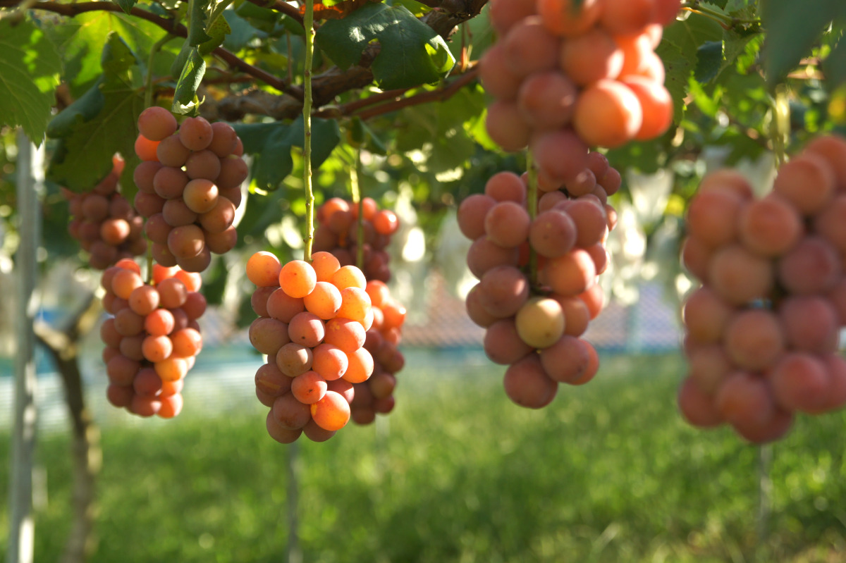紫黒色で糖度は20度以上で果肉はみずみずしく、巨峰のような香とベーリーAの濃厚な味わいを持つぶどうです。